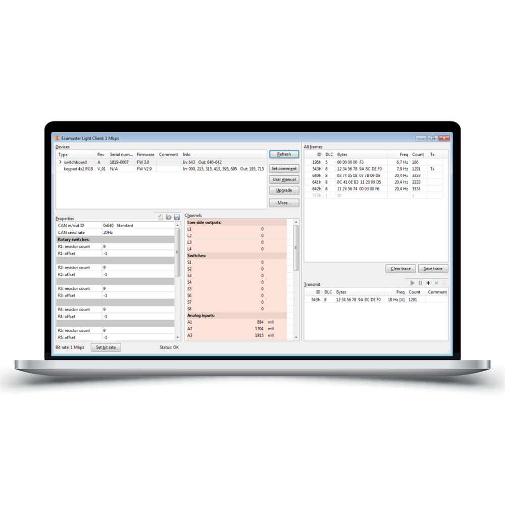 product details >Your ECUMASTER command center – Light Client configures, monitors and diagnoses devices and CAN networks with ease.