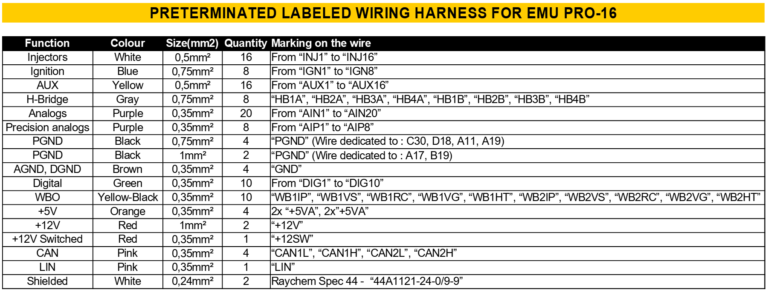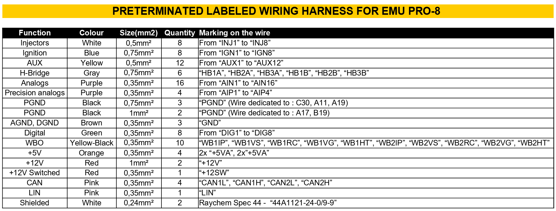 PRETERMINATED LABELED WIRING HARNESS FOR EMU PRO:
